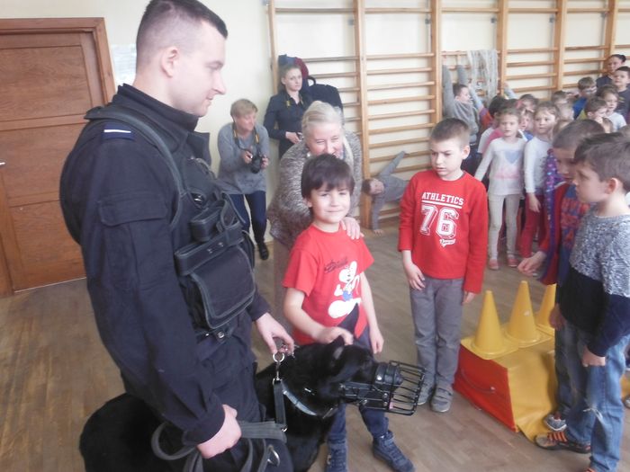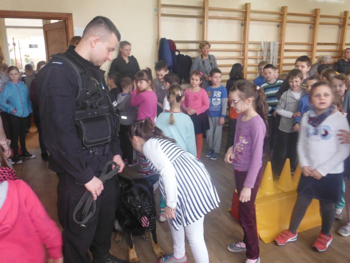 Łącznie Oro i jego przewodnik st.post. Mateusz Garbaciak z polickiej komendy odwiedzili 8 placówek. Kilkuset uczniów najmłodszych klas i kilkudziesięciu przedszkolaków poznało arkana pracy przewodnika psa, zobaczyło jak Oro pokonuje przeszkody.