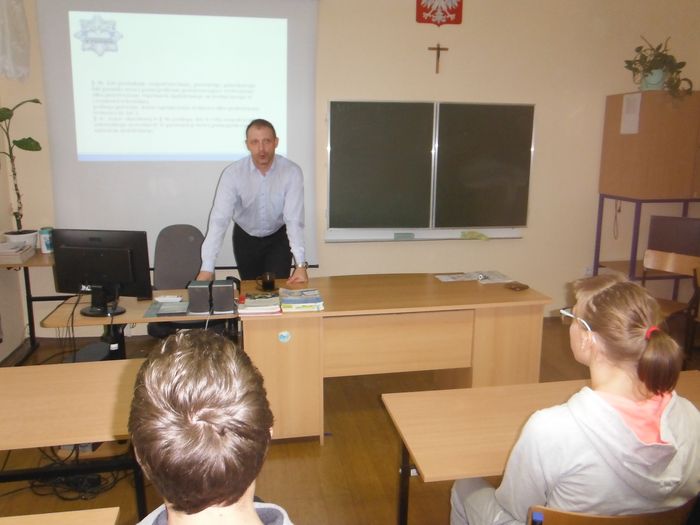 Spotkanie z policjantem skierowane było głównie do młodych ludzi, oni bowiem najczęściej korzystają z zasobów Internetu i co za tym są grupą najbardziej narażoną na wszelką związaną z nią przestępczość.