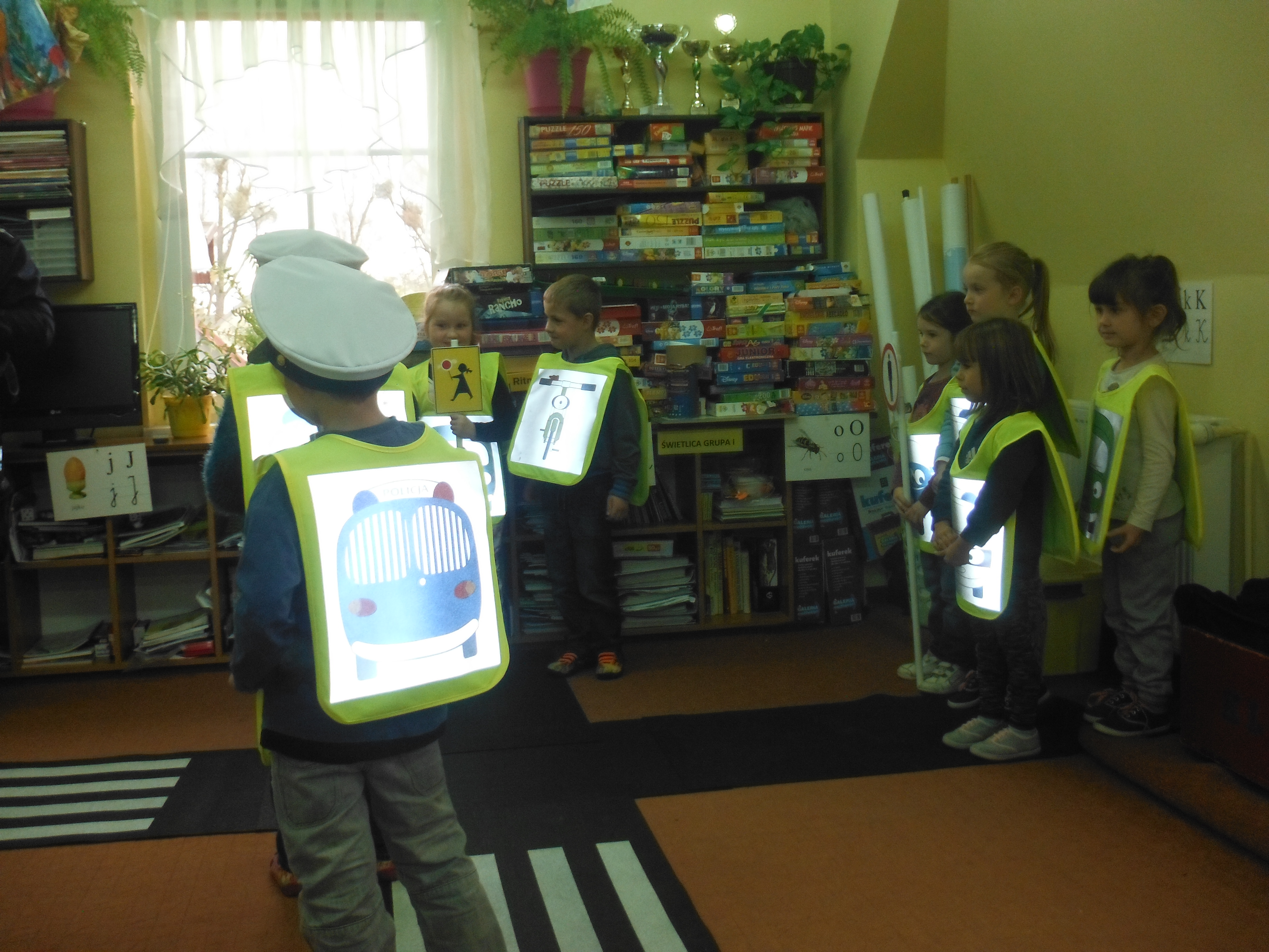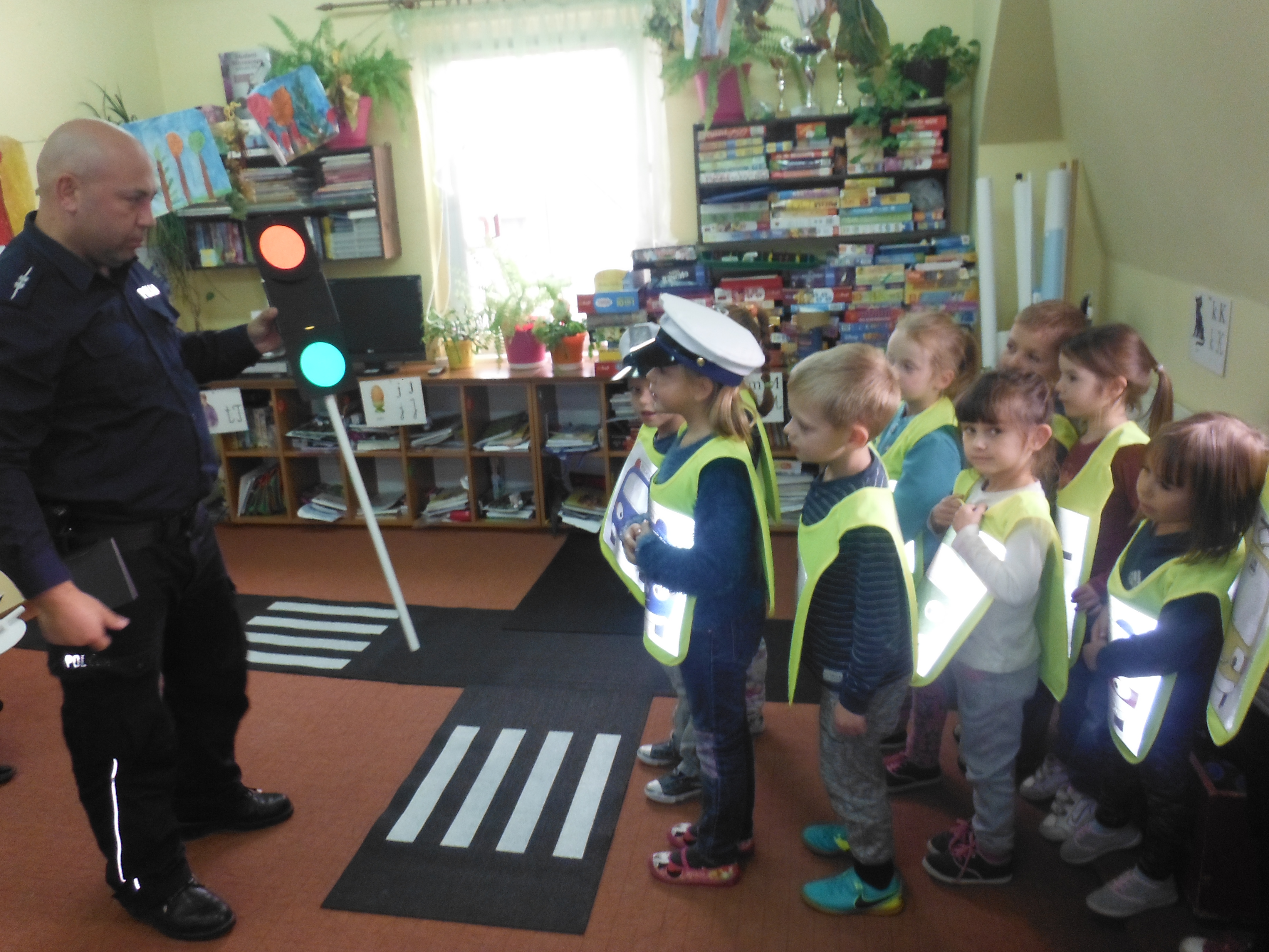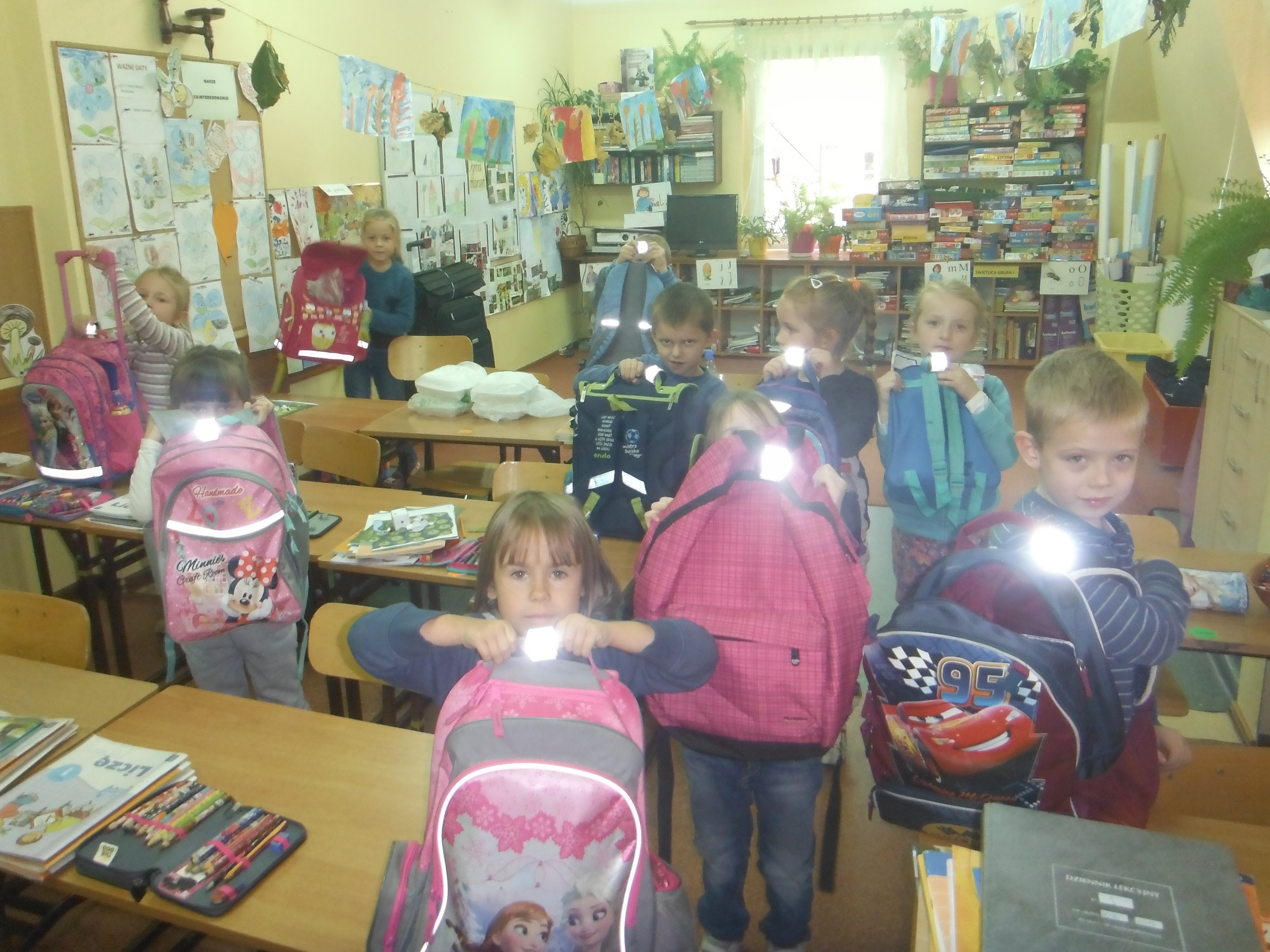 Mundurowi odwiedzili także szkołę podstawową w Dołujach gdzie przy wykorzystaniu wielkoformatowego miasteczka ruchu drogowego uczyli dzieci m.in.bezpiecznego poruszania się po drogach oraz powtarzali podstawowe zasady ruchu drogowego. Każdy przedszkolak otrzymał opaskę odblaskową z logo Komendy Wojewódzkiej Policji w Szczecinie.