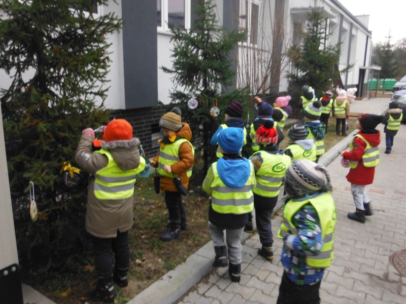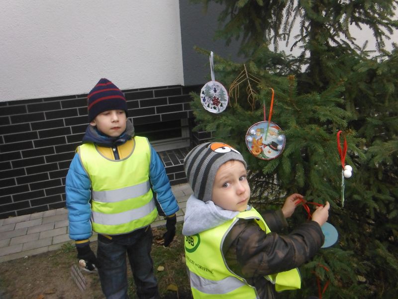 Policjantka zajmująca się profilaktyką nieletnich realizując założenia programu Bezpieczny Przedszkolak zaprosiła do polickiej komendy przedszkolaków z dwóch placówek. Dzieci z przedszkoli nr 11 i 6 przygotowały bombki i ozdoby świąteczne, którymi przyozdobiły rosnące na parkingu trzy choinki.