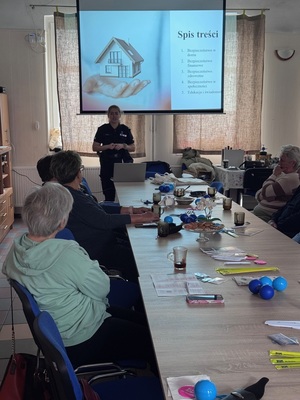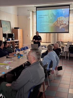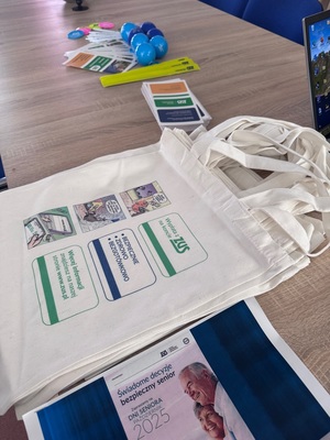 Na koniec spotkania seniorzy mogli skorzystać z ulotek informacyjnych zawierających wszystkie opisane powyżej zagadnienia przedstawione w pigułce. Ponadto uczestnicy prelekcji mogli również skorzystać z pozostałych materiałów profilaktycznych, jak piłeczki antystresowe, torby wielokrotnego użytku czy odblaski.