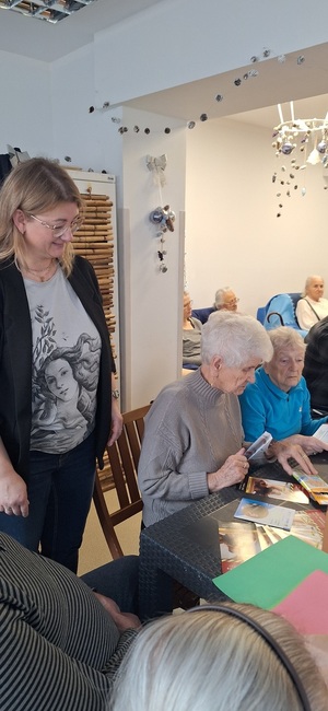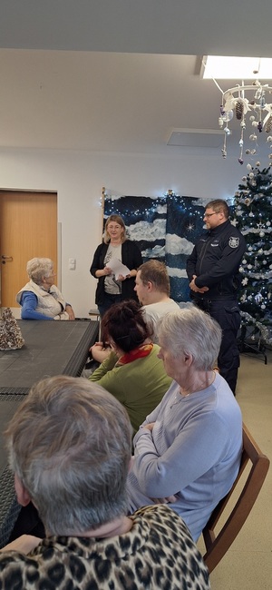 W dniu wczorajszym w Dziennym Domu Seniora Plus w Policach w ramach akcji Roztropny Senior, spotkaliśmy się z osobami starszymi z powiatu polickiego, z którymi omówione zostały tematy przeciwdziałania przemocy wobec osób starszych. Nasi seniorzy otrzymali od pracownika CUS Police broszury informacyjne z kontaktami i adresami do instytucji pomocowych. Pracownik CUS przybliżył swoją codzienną pracę, a także we wsparciu dzielnicowego uwrażliwił na reagowanie na krzywdę drugiego człowieka. Ponadto w związku ze zbliżającym się okresem świątecznym, stróże prawa w ramach przeciwdziałania uzależnieniom i samotności wśród osób starszych prowadzili aktywne i „żywe” rozmowy na temat możliwych aktywności fizycznych i kulturowych polickich seniorów, a także obdarowali zebranych w odblaski „Cisza, która boli- razem przeciw samotności”. W ramach umilenia wspólnego spędzonego czasu wraz z seniorami wykonano kartki świąteczne.