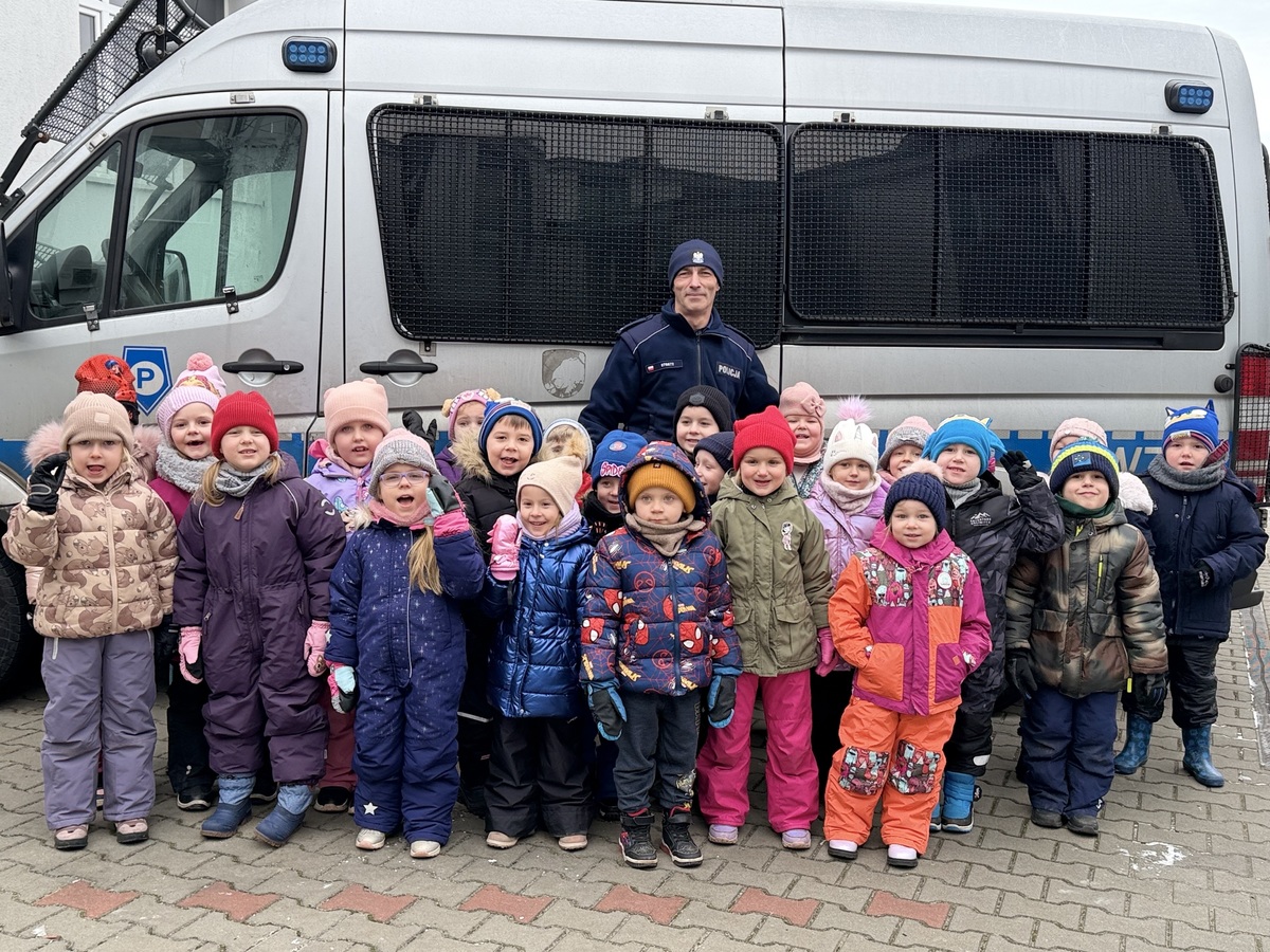Przed nami długo wyczekiwane przez większość uczniów ferie zimowe. To wzmożony czas aktywności fizycznej na zewnątrz. Panująca obecnie śnieżno- biała aura sprzyja zabawą takim jak kulig, bitwa na śnieżki i wiele innych zabaw na świeżym powietrzu. W trakcie pobytu najmłodszych mieszkańców powiatu polickiego z Przedszkola Publicznego nr 6 w Policach, uczniowie mieli możliwość zagrania w grę związaną z bezpieczeństwem w trakcie zabaw na stoku, zimowe przerwy od obowiązków szkolnych, czy spędzaniu wolnych chwil z bliskimi. Pomiędzy omawianiem struktury jednostki i sprzętu służbowego policjantów przedszkolaki musiały skupić się na odnajdywaniu ukrytych karteczek, na których były przygotowane do nich pytania. Wiewiórki spisały się świetnie, udzielający tylko poprawnych odpowiedzi oraz same przybliżały zasady bezpiecznej zabawy jak zakaz zjazdu na sankach w pobliżu ulic i ruchliwych dróg. Na koniec, każdy z nich otrzymał na pamiątkę odblask w postaci opaski na rękę, dwóch kamizelek odblaskowych, plakatu z informacją o zakazie wchodzenia na zamarznięte stawy, rzeki i jeziora, a także przypominajkę o numerach alarmowych. Dziękujemy za spotkanie z małymi odkrywcami i liczymy na kolejne spotkania! Do zobaczenia i udanego wypoczynku!