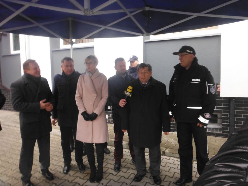 Na dziedzińcu Komendy Powiatowej Policji w Policach na ręce Komendanta Powiatowego mł.insp. Mariusza Bajora przez Starostę Polickiego Andrzeja Bednarka, Burmistrza Polic Władysława Diakuna oraz Panią Wójt Gminy Kołbaskowo Małgorzatę Schwarz przekazane zostały kluczyki do nowego radiowozu.